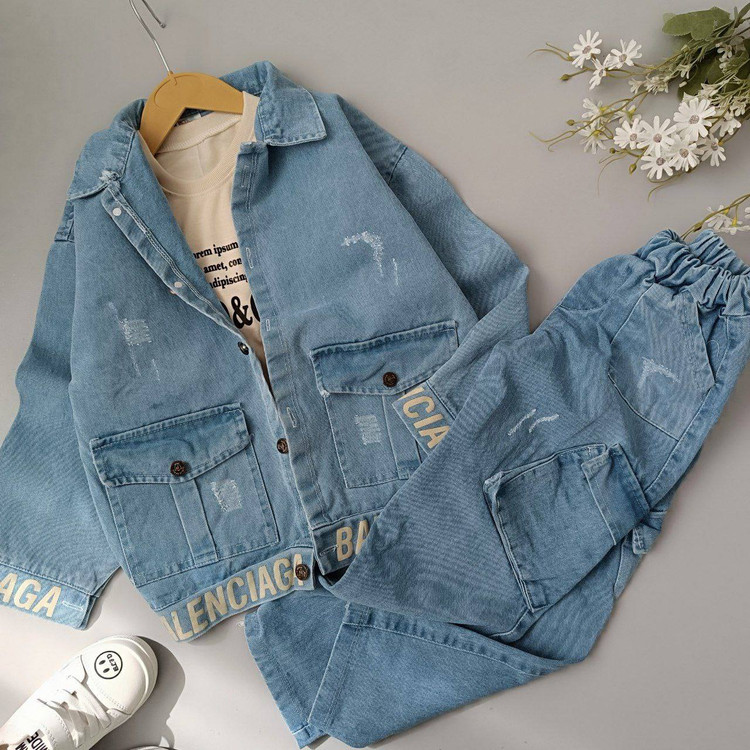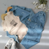 سه تیکه تیشرت پنبه کت و شلوار لی ضخیم ۶۰۰گرم