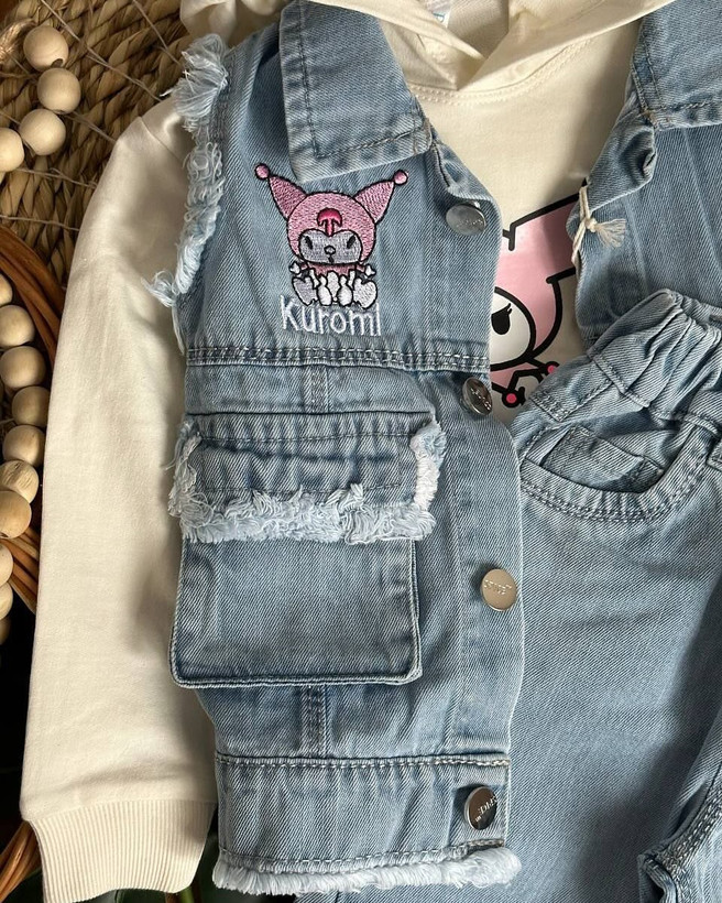 ست سه تیکه ژیله شلوار محبوب کورومی جین گرم بالا