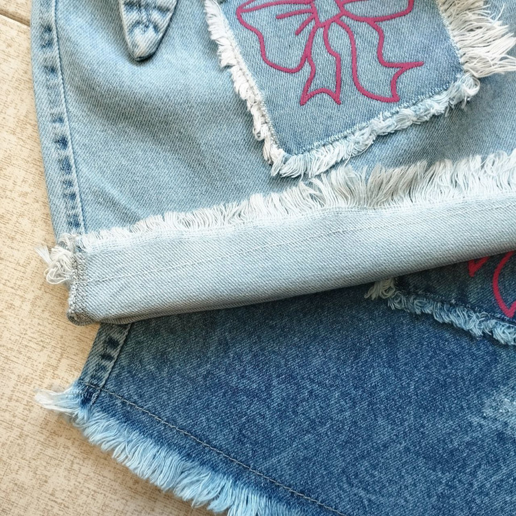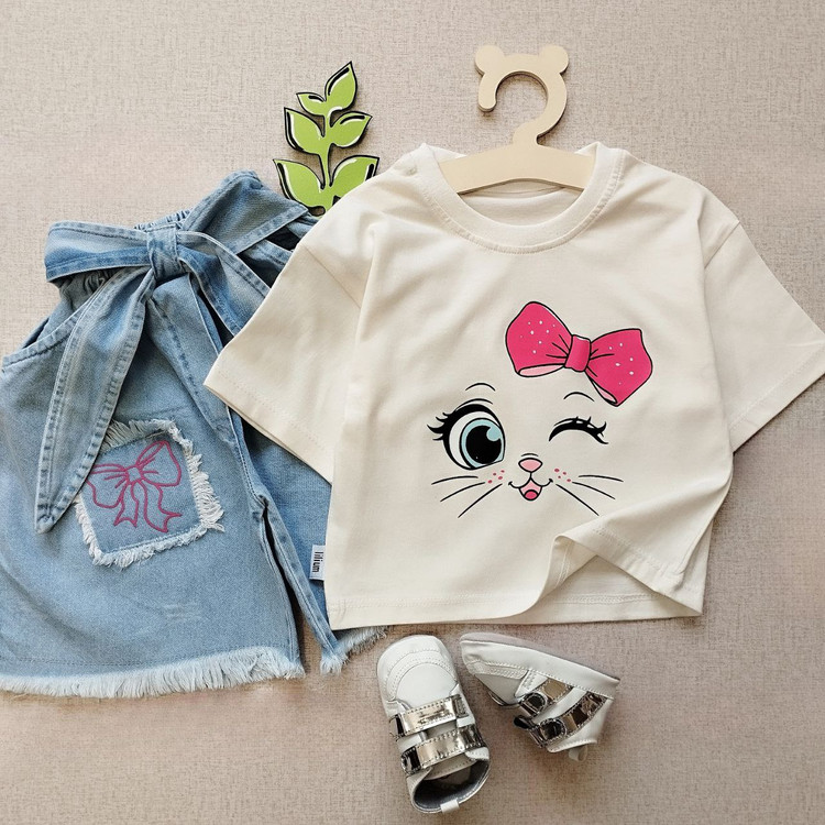 ست کراپ نخ پنبه همراه با شلوارک جین گرم بالا