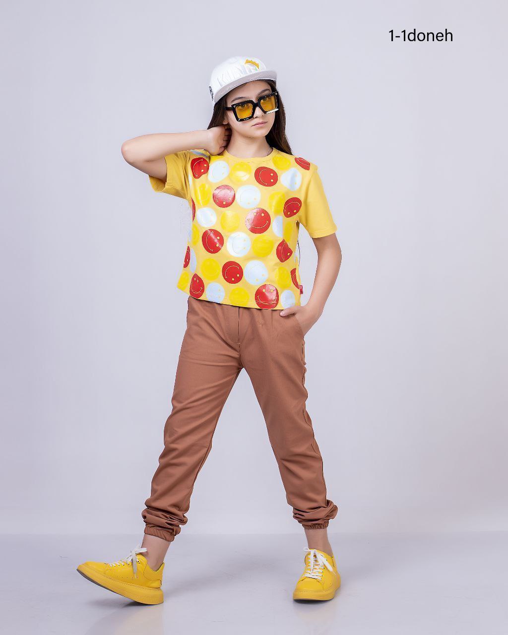 ست کراپ شلوار جنس‌کراپ پنبه لاکرا وشلوار کتان کش